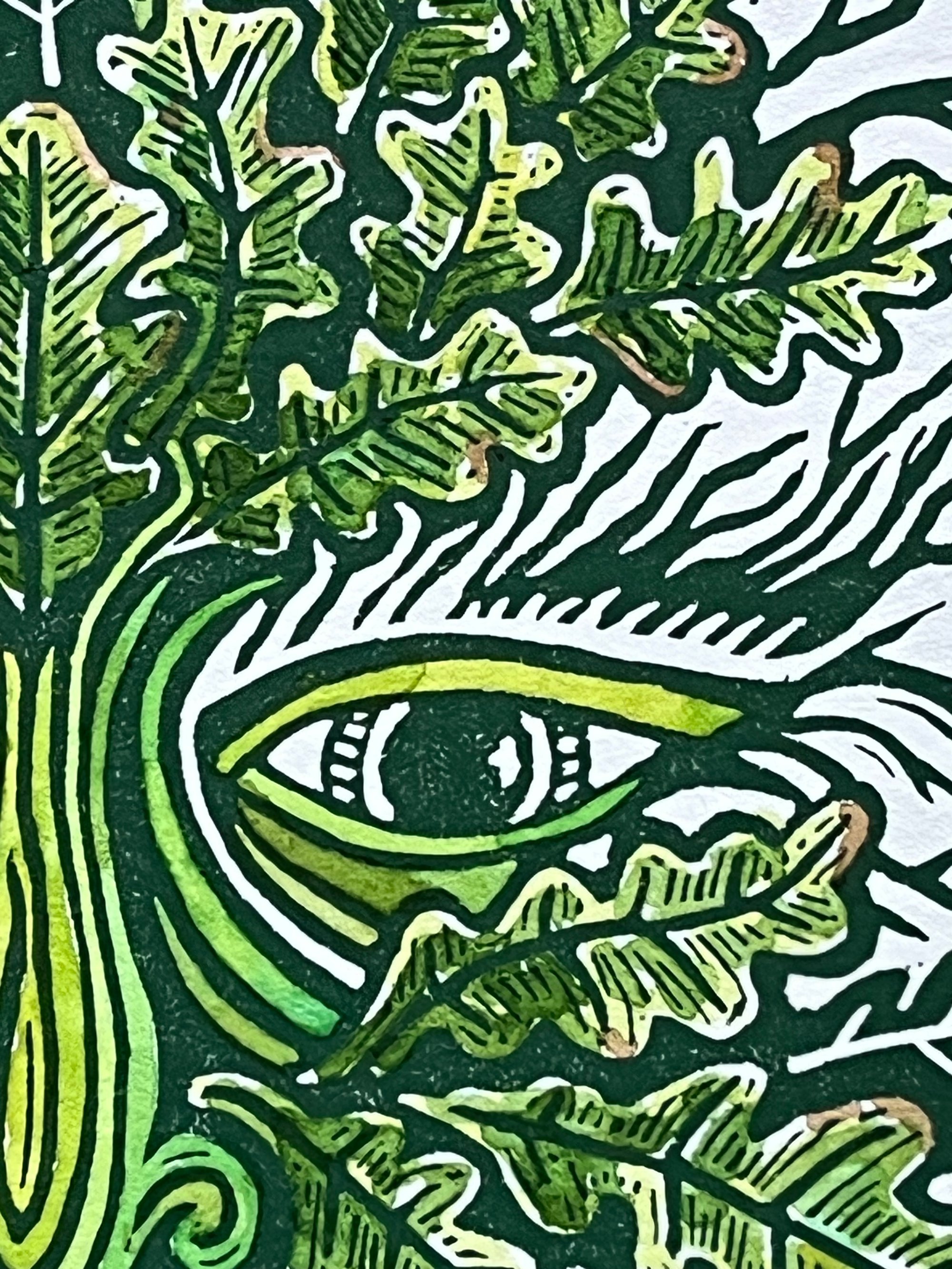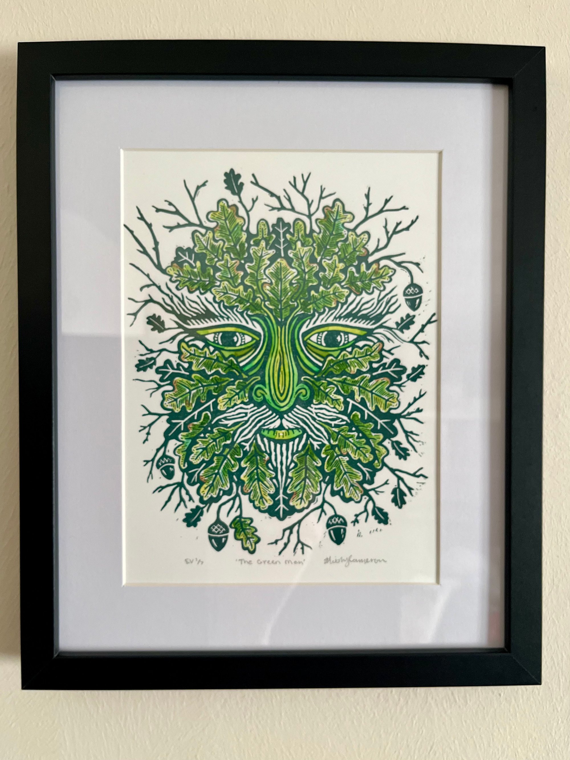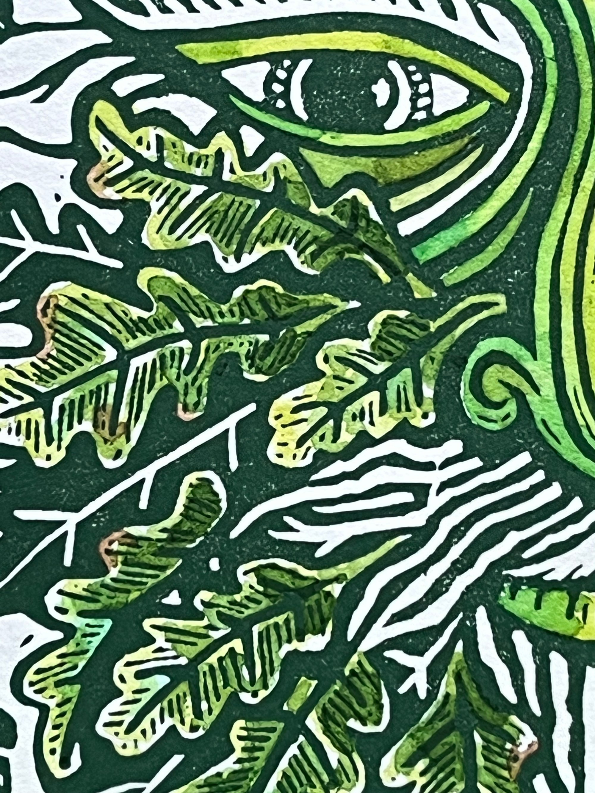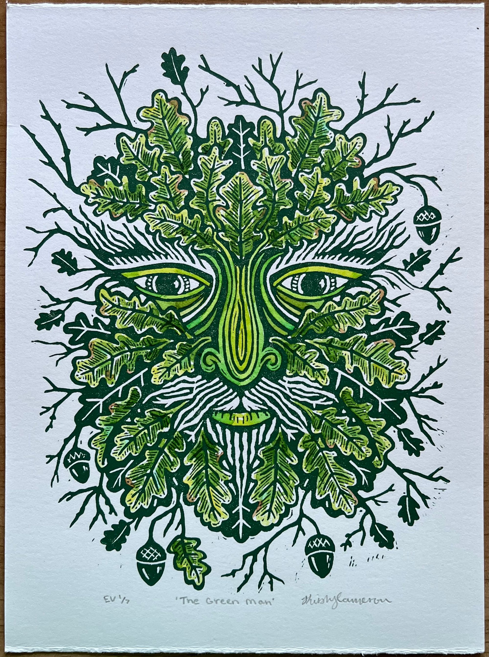 ‘The Green Man’ Ltd ed linocut print (Colour variant). Very limited edition of 7